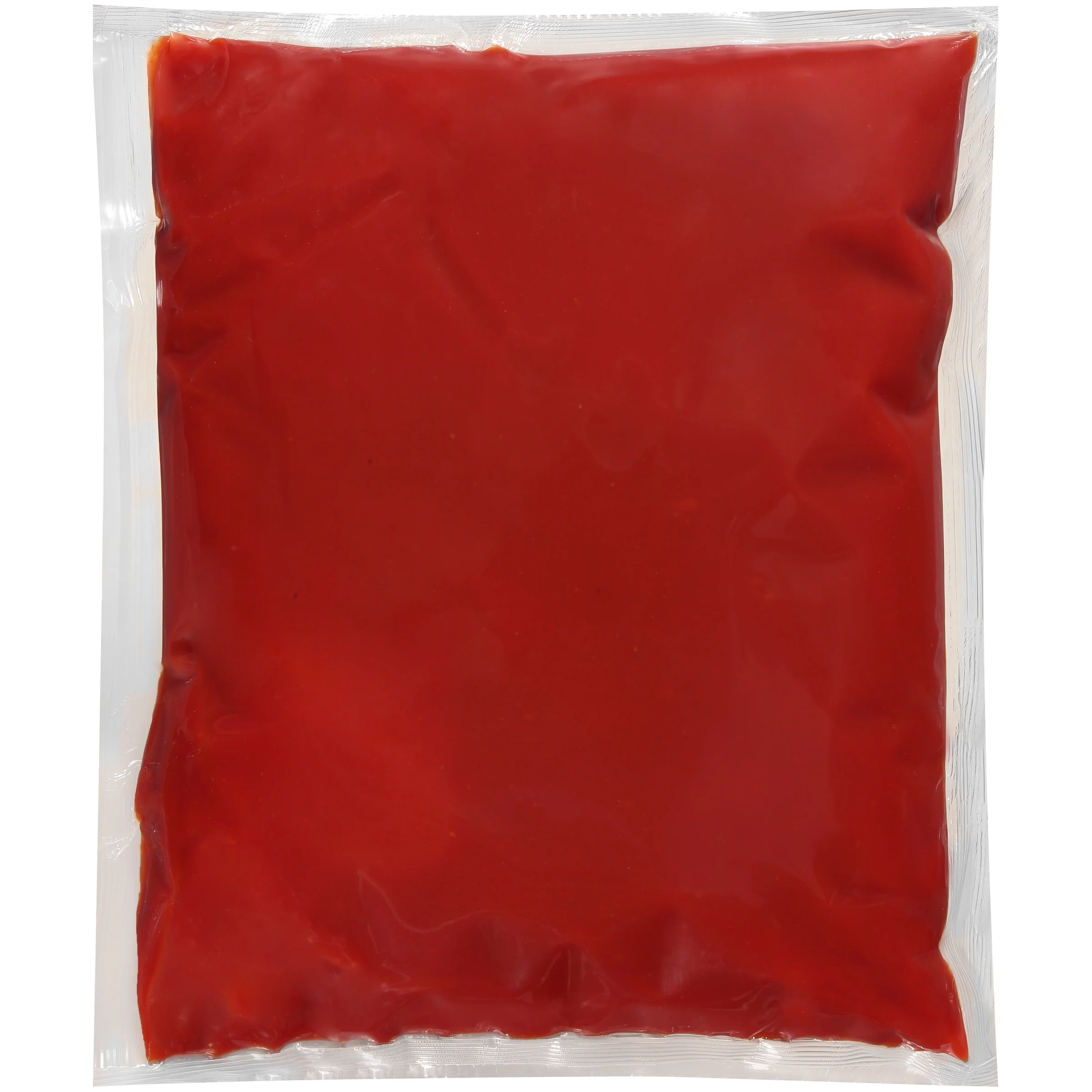 Each pouch contains 7.125 lb (3.2 kg) of ketchup, providing efficiency and convenience for high-volume kitchens. The flexible pouch packaging minimizes waste, reduces storage space, and is compatible with most commercial condiment dispensers. Designed for food-service operations, these pouches make it easy to refill bottles, pump systems, or portion stations while maintaining product freshness and hygiene.